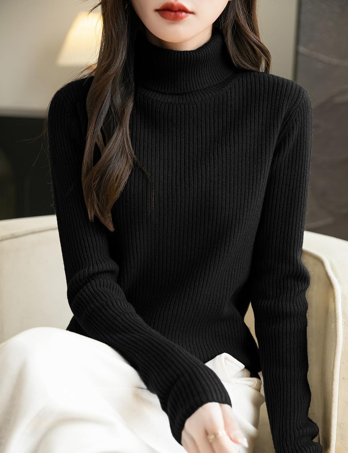 - Features: Fine 12 gauge fabric, lightweight. Normal fit, solid color, turtleneck, long sleeves, ribbed design. High elasticity, casual style. Lightweight, warm, soft, very comfortable to wear. This merino wool sweater can be easily paired with leggings, jeans, knee-high boots or sneakers to create a casual and fashionable look.