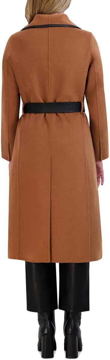 Women’s Double-Faced Luxury Soft Wool Blend Long Line Wrap Coat, Pu Binding Trim, Removable Belt
