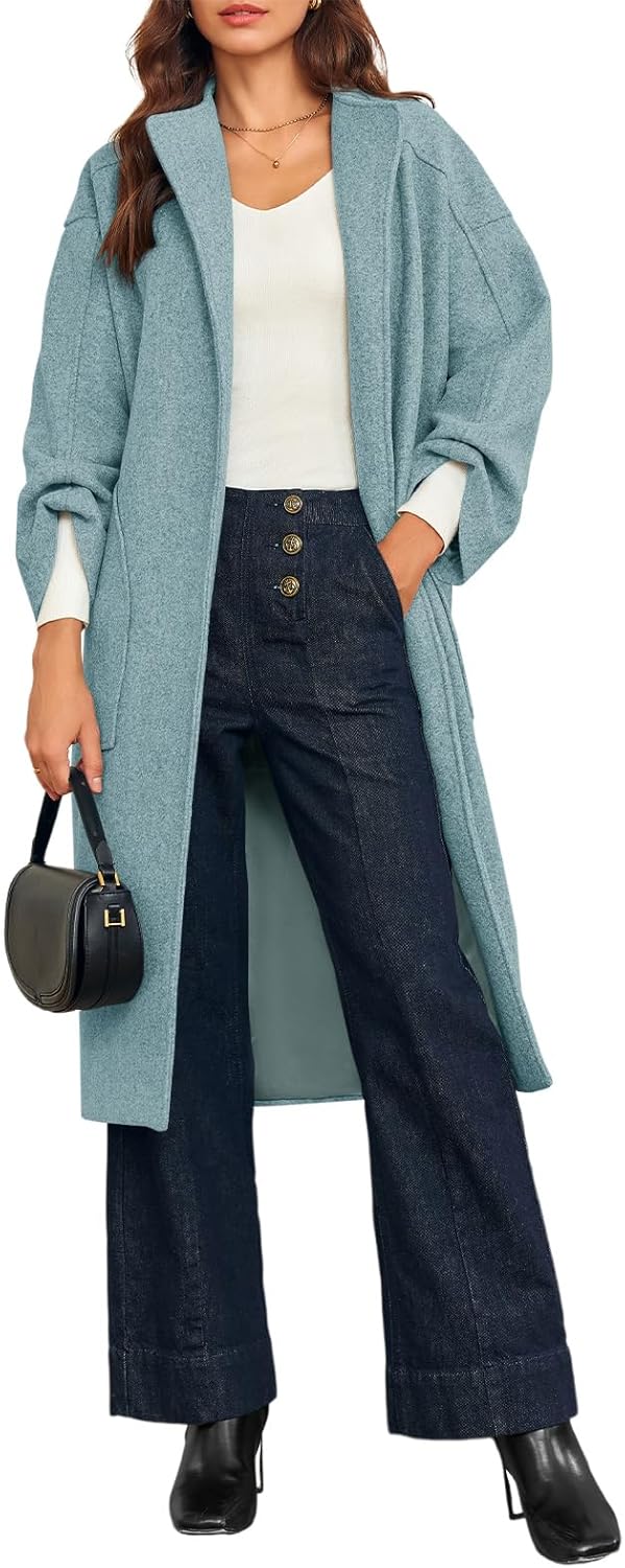 Womens Long Pea Coats Oversized Wrap Wool Blend Trench Coats Winter Open Front Cardigan Overcoats
